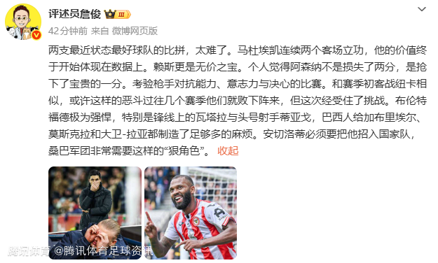2026-02-13 07:10北京时间2月13日,英超第26轮,最终阿森纳客场1-1布伦特福德,赛后评述员詹俊发文点评了这场比赛。