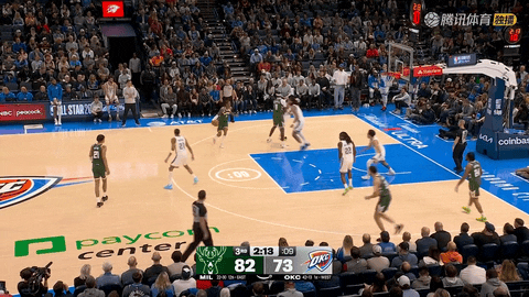 次节回来,雄鹿继续加强进攻,第二节还剩10分59秒时,库兹马转身勾手命中,托马斯突破上篮也有收获,将比分拉开到34:28。第二节还剩9分49秒时,库兹马命中三分,雷霆随即在还剩9分25秒至7分57秒的1分28秒内由卡鲁索、杰林-威廉姆斯和卡鲁索连续命中三记三分,将比分从37:32追至40:40。