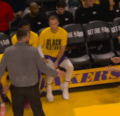 2026-02-13 12:10北京时间2月13日,湖人和独行侠的比赛正在进行中,本场比赛东契奇因伤作壁上观,无缘对阵老东家,身穿便装的东契奇,在场边和主帅雷迪克“斗嘴”。