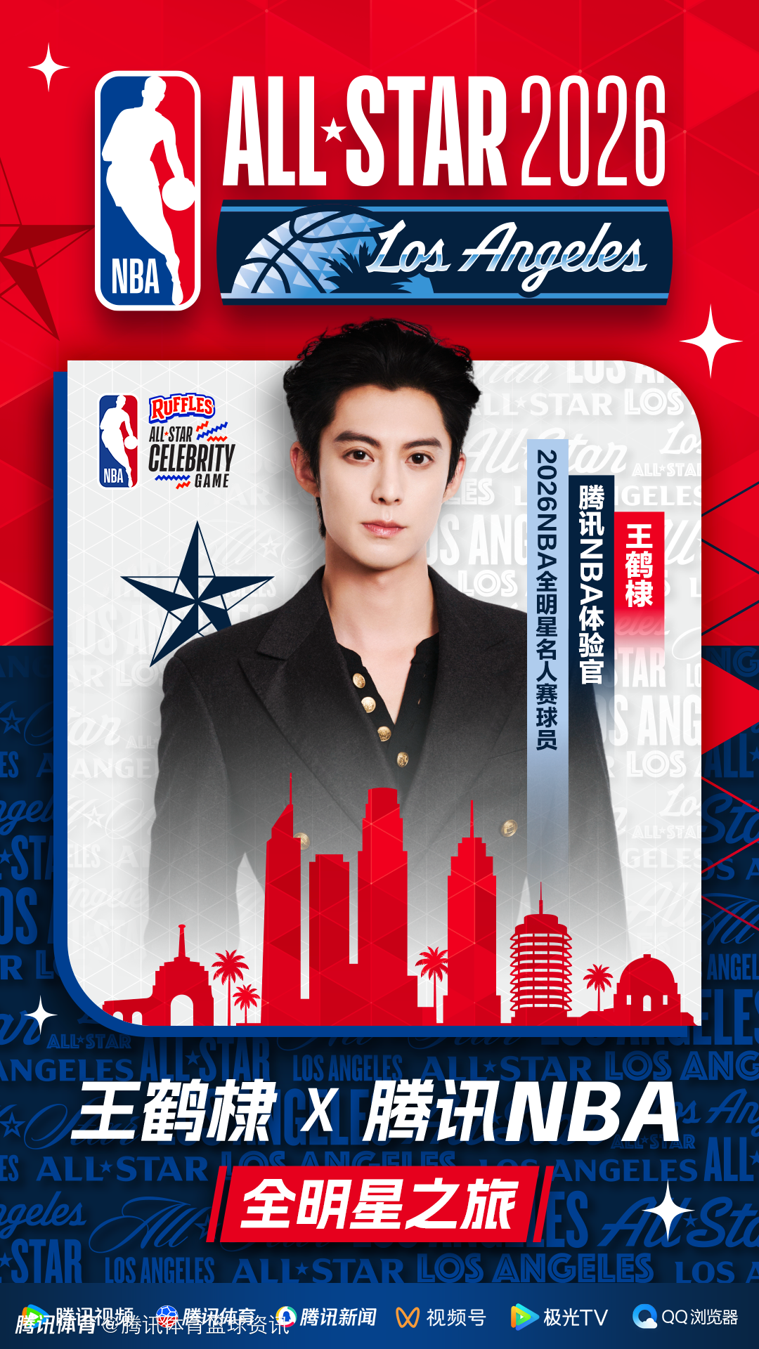 红发吸睛!腾讯NBA体验馆王鹤棣第三次出战全明星名人赛 造型亮眼现身赛场