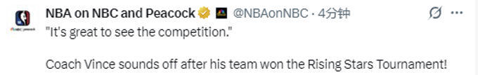 2026-02-14 12:30北京时间2月14日,NBA新秀赛打响,卡特队25-24险胜安东尼队。赛后,卡特在场边接受媒体采访,谈到了自己执教取胜的感受。
