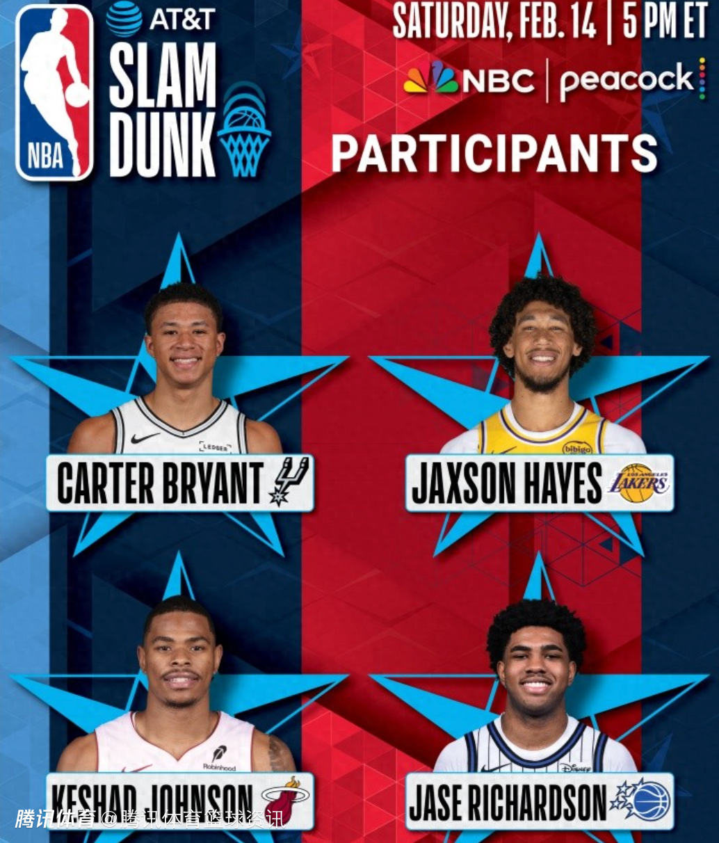 2026-02-14 13:20北京时间2月15日早上6点,NBA全明星单项赛(三分、扣篮、投篮之星)将打响,杨瀚森、任嘉伦客串解说,在边看直播边抽奖:NBA30队勋章礼盒、Q币。