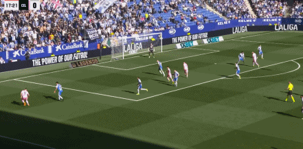 第38分钟,塞尔塔右路传中,尤特格拉后点包抄得手,1-0领先西班牙人。