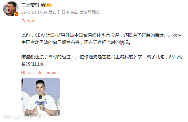 2026-02-15 00:20媒体人三土带刺透露,北京男篮后卫陈盈骏在参加中国台北队的窗口期发布会时被问到了此前在山西队主场被球迷吐口水,陈盈骏也还原了当时的经过。