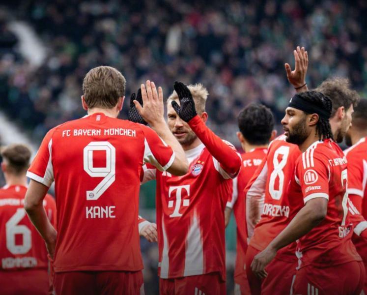 本周末德甲第22轮全面打响,作为领头羊的拜仁,奔赴客场挑战云达不莱梅,本场比赛疲劳作战的拜仁慕尼黑,仍然在客场展现出了远超对手的战斗力,最终靠着凯恩和格列茨卡的进球,3-0完成了对不莱梅的德甲客场16连胜。