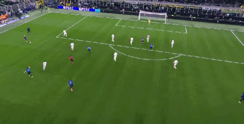 第17分钟,恩里克大禁区右侧传中,皮球打在坎比亚索脚上折射入网,国米取得了1-0的领先。