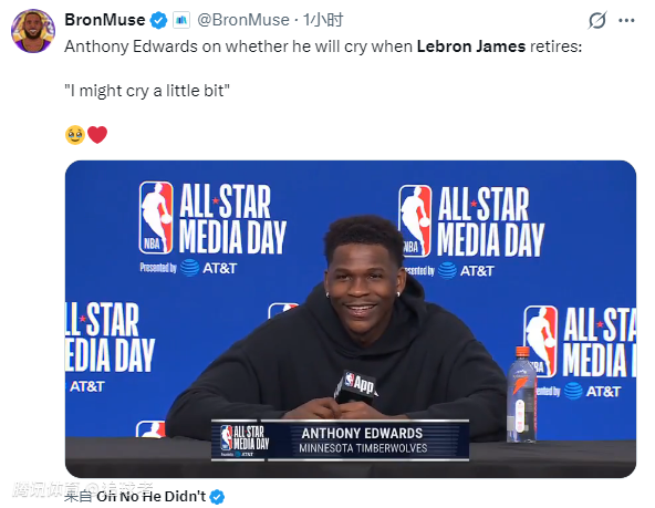 谈到是否想过在勒布朗退役后成为NBA的门面时,爱德华兹表示:哥们儿,他们不是有文班亚马嘛!有文班亚马在,他们肯定没问题。