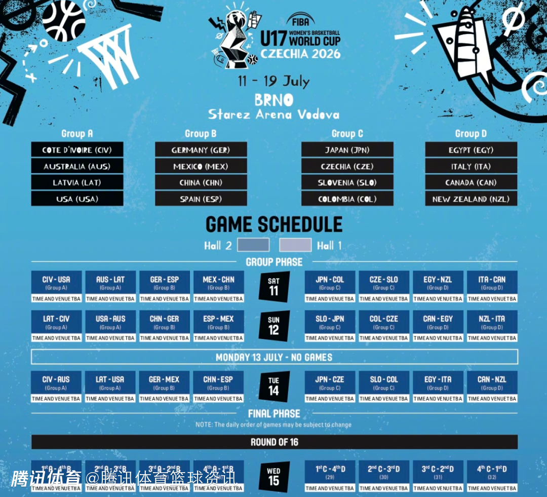 2026-02-15 13:40北京时间2月15日,FIBA官方公布了U17女篮世界杯中国队的小组赛赛程。