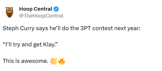 库里明年再次参赛,也算是把话题拉满,他还强调带上克莱,知道大家希望看到水花兄弟在三分大赛的舞台上再次较量一番。