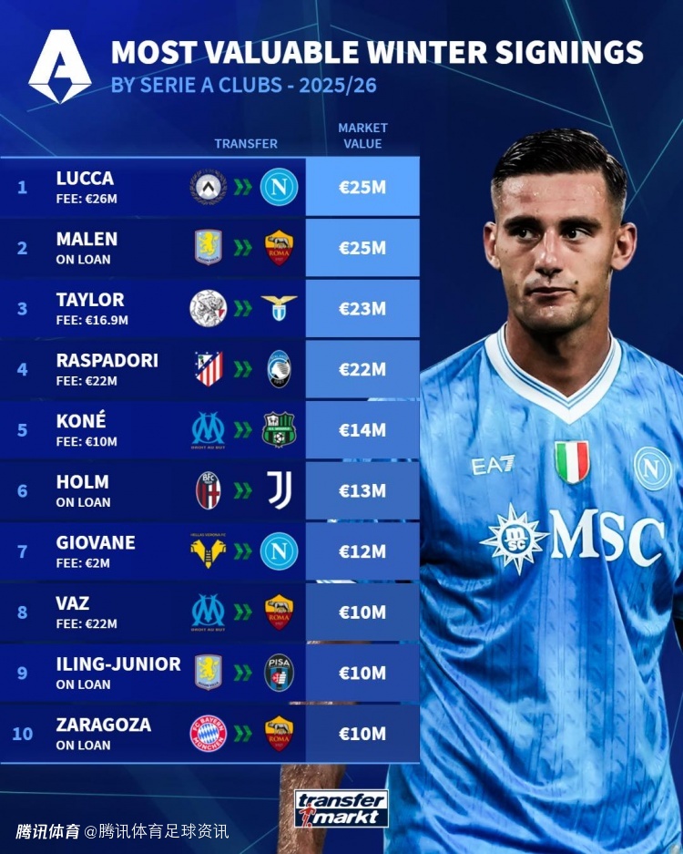 从阿贾克斯加盟拉齐奥的肯尼思·泰勒估值2300万欧;贾科莫·拉斯帕多里转会亚特兰大后为2200万欧。