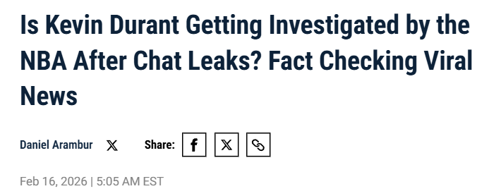 这一轮关于杜兰特的传闻,大概率只会变成球迷玩梗素材,不太可能引发真正的联盟调查。