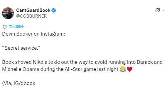 全明星名场面!布克保护奥巴马推开约基奇 自封秘密特工