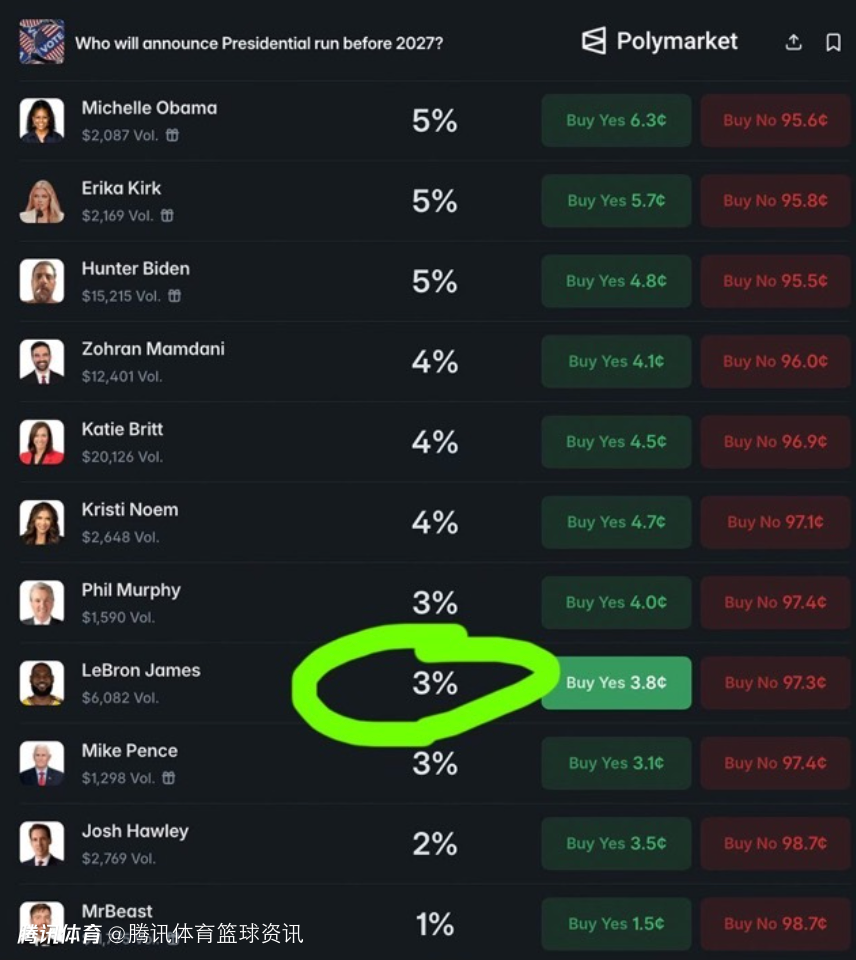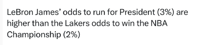 离谱预测!詹姆斯赢得美国总统概率为3%,竟超湖人夺冠概率