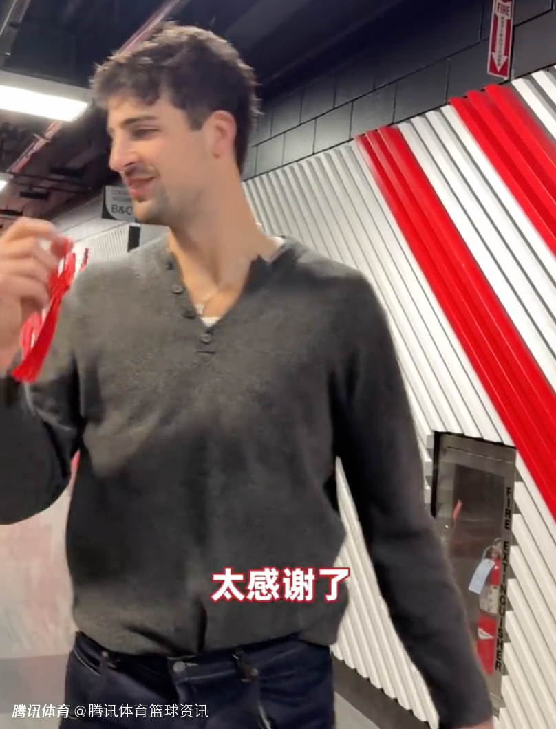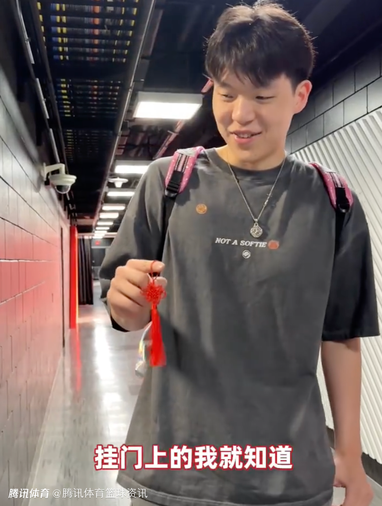 杨瀚森拿到中国结说道:“我就知道这好像是挂门上的。”随后工作人员向杨瀚森解释这是带来好运的,杨瀚森也表示谢谢。