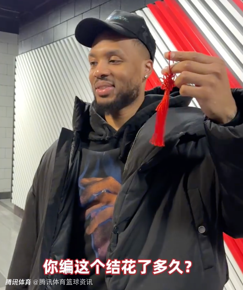 利拉德拿到中国结后说道:“你编这个结花了多久?这不是你编的吧,你买的现成的。”之后利拉德也用中文说道:“新年快乐。”