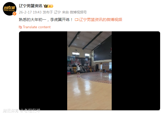 “熟悉的大年初一,李虎翼开练!”大年初一,有辽宁的自媒体博主晒出李虎翼在球馆进行三分训练的视频并写道。