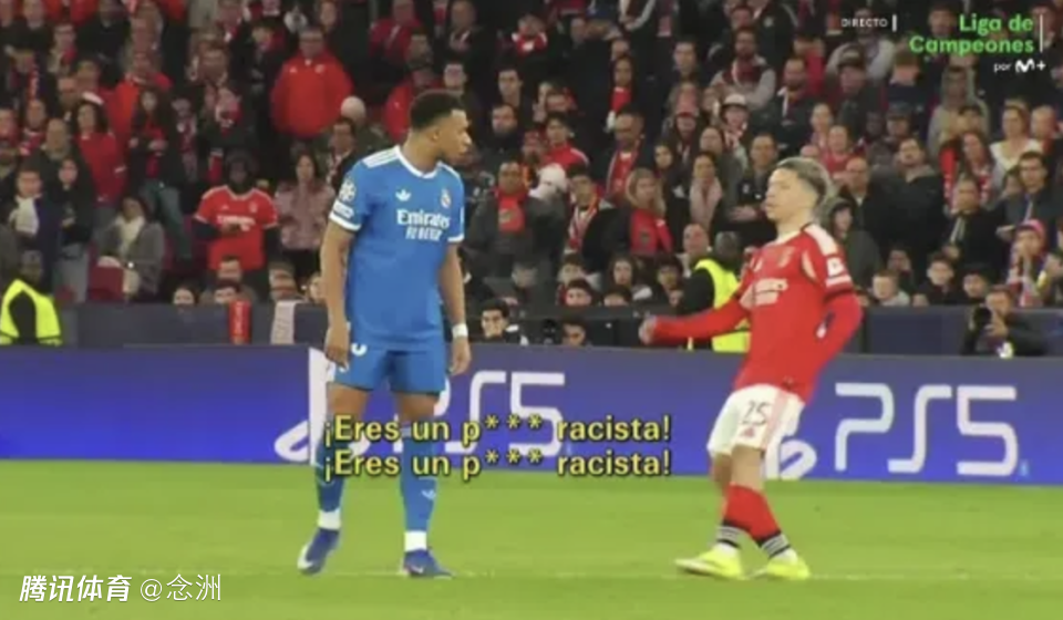 赛后,姆巴佩在混合采访区义正词严地表示:“(本菲卡的)25号球员5次称维尼修斯为猴子。这是我亲耳听到的。我们必须为所有看着我们的孩子们树立榜样,有些事情我们不能接受。不能一概而论,我有葡萄牙朋友,他们对我都很好,但是当有人行为如此时,我们必须说出来。人们不知道发生了什么,所以才会嘘我们。”