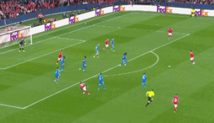 第85分钟,本菲卡的进攻,里奥斯被维尼修斯、卡马文加联合夹击撞翻在地,本菲卡获得任意球。