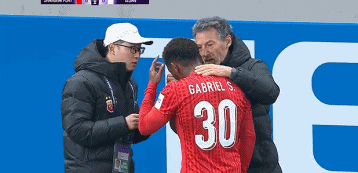 第33分钟,加布里埃尔与对手相撞,导致鼻子血流不止,随后李新翔登场将其换下。