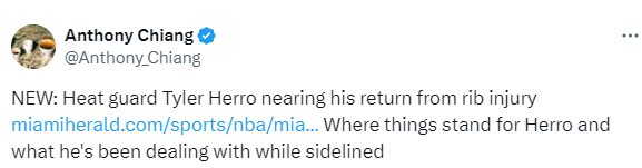 赛季仅打11场!希罗即将复出:因肋骨伤势缺阵近一个月终回归