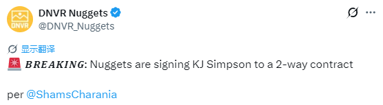 2026-02-19 10:50北京时间2月19日,据ESPN名记Shams报道,消息人士透露,KJ-辛普森将与掘金签下一份双向合同。