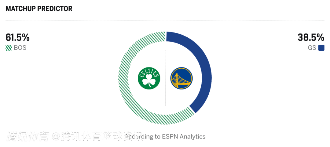 凯尔特人61.5%,勇士38.5%