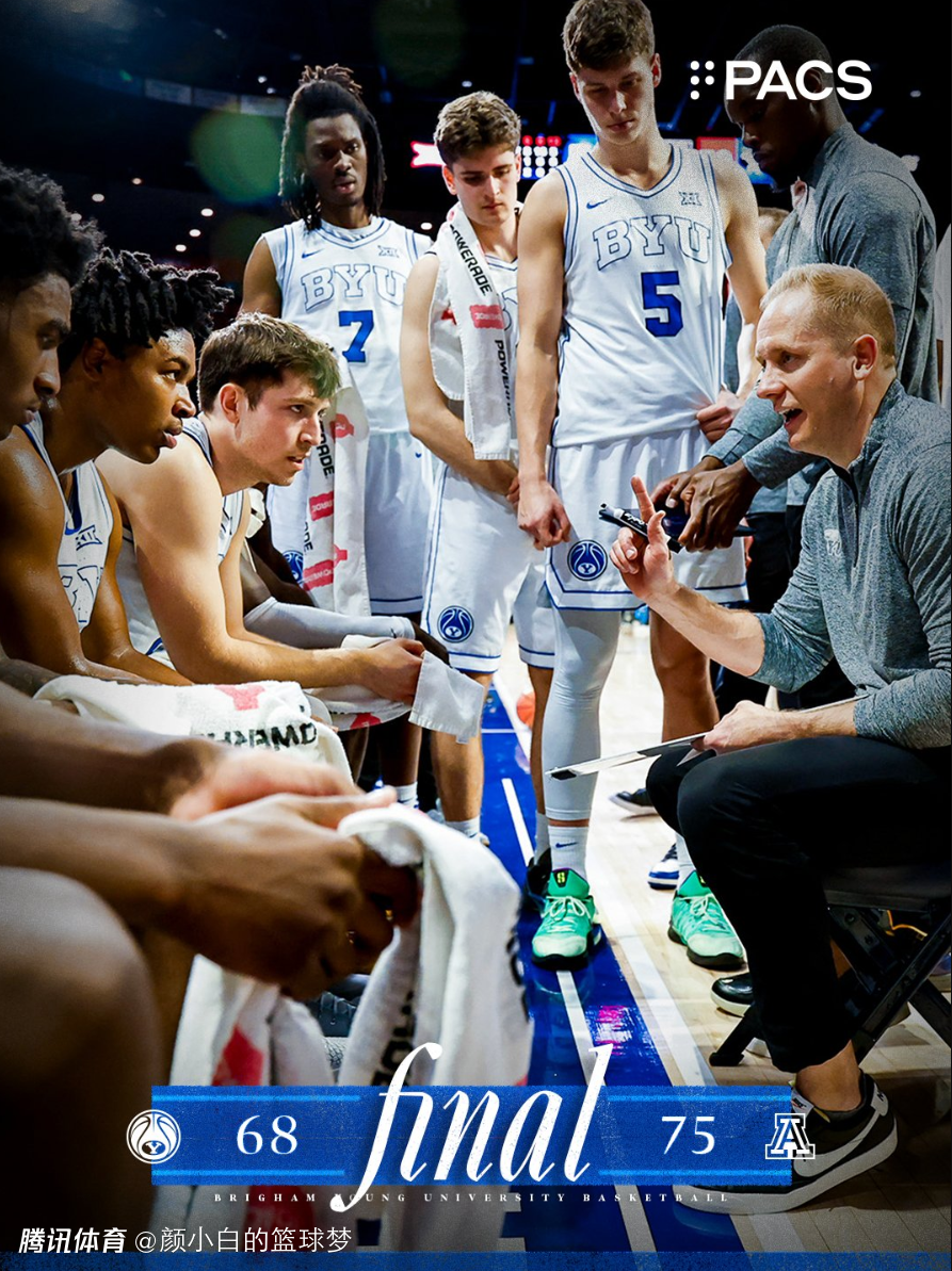 2026-02-19 21:00北京时间2月19日,NCAA常规赛,杨百翰大学68-75惜败亚利桑那大学,这场比赛杨百翰大学一直都落后亚利桑那大学,下半场杨百翰一度缩小到3分但又被亚利桑那拉开,杨百翰结束二连胜。