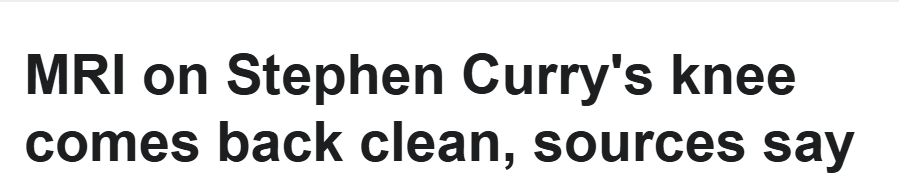 库里再次核磁结果出炉!无结构性损伤 持续疼痛肿胀暂时不能复出