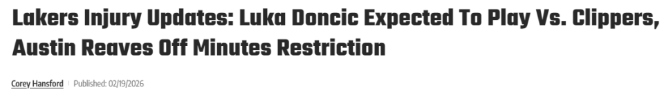 湖人全员健康出战快船!东契奇正式复出 里夫斯解除上场时间限制