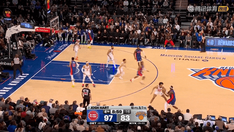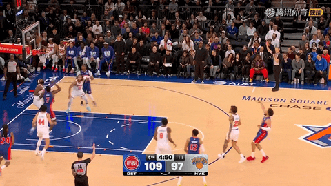 第二节比赛中,尼克斯三分线外手感冰冷,在第二节还剩10分22秒到结束的时间里三分球8投0中,布里奇斯、阿尔瓦拉多、沙梅特和布伦森的外线尝试全部打铁,活塞则借机把分差从4分扩大到10分,完成比分上的第一次明显拉开。