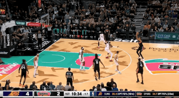 尽管文班亚马遭到对手包夹没能获得太多出手机会,但是他仍然为球队提供篮板保障,并且在一次回防过程中连续禁区大帽杰伦-格林和马克-威廉姆斯,彻底捍卫马刺禁飞区让现场球迷沸腾。在文班亚马的帮助下,马刺在首节比赛取得5分领先优势。