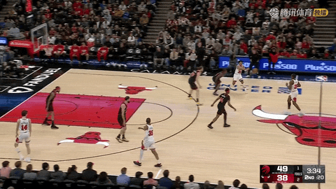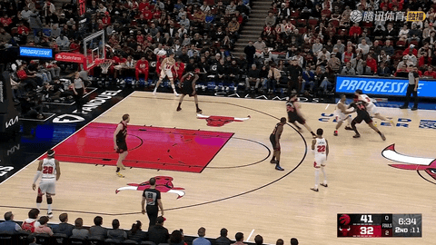 公牛在第二节还剩5分18秒到还剩3分20秒连续命中三记三分,西蒙斯两次远投命中,奥科罗也飙进一记,将比分从44:35追至49:41。