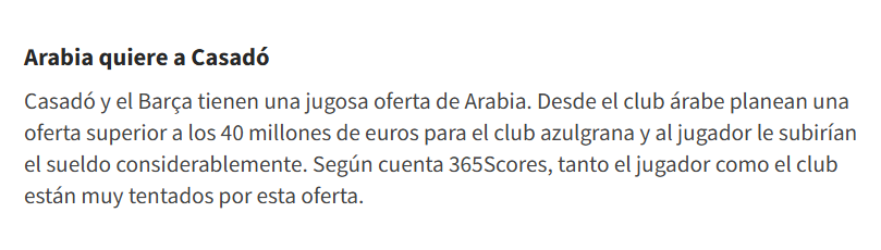 卡萨多不缺少追求者,《每日体育报》透露,沙特联赛的豪门盯上卡萨多,掌管和分配转会费的沙特国家基金,将在未来几天安排会谈,并送上报价。这将是一份巨额报价,转会费超过4000万欧元。要知道,德转给卡萨多的估值为2500万,沙特土豪愿意溢价引进巴萨中场。