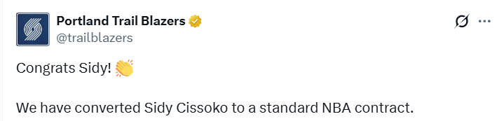 开拓者官宣一签一裁!西索科转正获两年合同 吕佩尔为他腾出名额