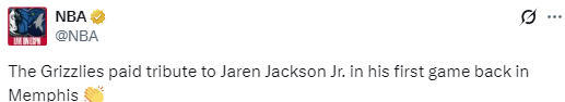被交易后首次回孟菲斯!灰熊主场致敬小贾伦-杰克逊 现场球迷鼓掌欢迎