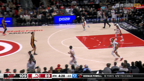 第四节还剩7分55秒时,约翰逊助攻奥孔古空切上篮命中,在这一回合后,他本场数据达到三双水平。此后比赛完全进入热火节奏,暂停调整后,第四节还剩5分21秒起,维金斯突破扣篮,鲍威尔打成“2+1”并罚球命中,接着在第四节还剩4分18秒时,阿德巴约命中三分,比分来到112-89。