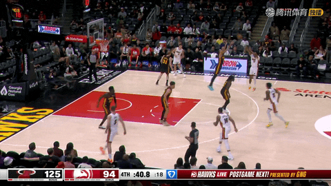 第四节还剩11分34秒时,热火以89-75领先老鹰,到第四节还剩33秒时比分来到128-94,热火在约11分钟内打出39-19的攻势,韦尔补篮得分、雅库奇奥尼斯和加德纳多次通过罚球和上篮取分,阿德巴约在突破扣篮中完成终结,将优势从14分一举扩大到34分,彻底锁定胜局。