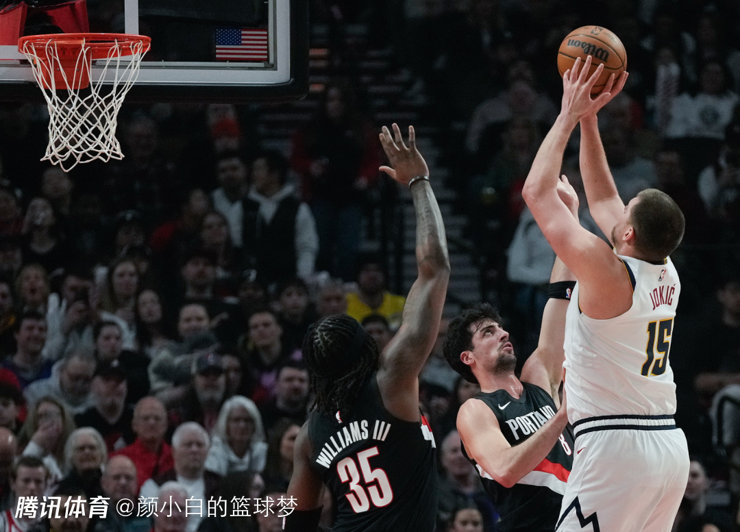 2026-02-21 13:30北京时间2月21日,掘金大胜开拓者避免连败。这场比赛是掘金背靠背的第二场,此役约基奇的进攻欲望跟打快船截然不同,他首节就拿到19分帮助掘金奠定领先优势,三节打完拿到32+9+7的准三双将分差拉开到40分,末节约基奇就直接打卡下班了。