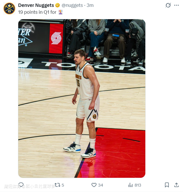 三节32+9+7提前打卡!约基奇战意浓厚一人打一队 杨瀚森圆梦成功