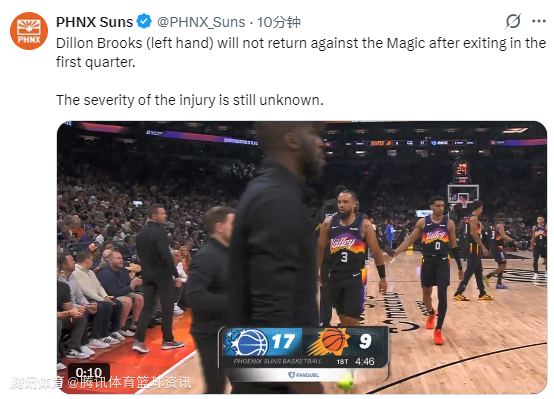 比赛中,狄龙在几个进攻回合中一直捂着自己的手掌或手腕,随后返回了更衣室。球队官方随即确认他本场比赛将不会回归,目前伤势严重程度尚不明确。