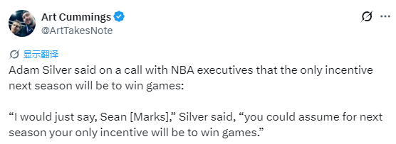 另一位来自当前摆烂球队的高管则表示:“毫无疑问,管理层与联盟之间的紧张情绪在升级。但绝大多数人都意识到,改革必须到来,问题只是时间、内容和方式——是临时补丁,还是长效方案。”