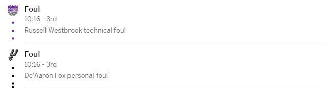 最终裁判观看录像回放后,吹罚了福克斯防守犯规,但也吹罚了威斯布鲁克技术犯规。