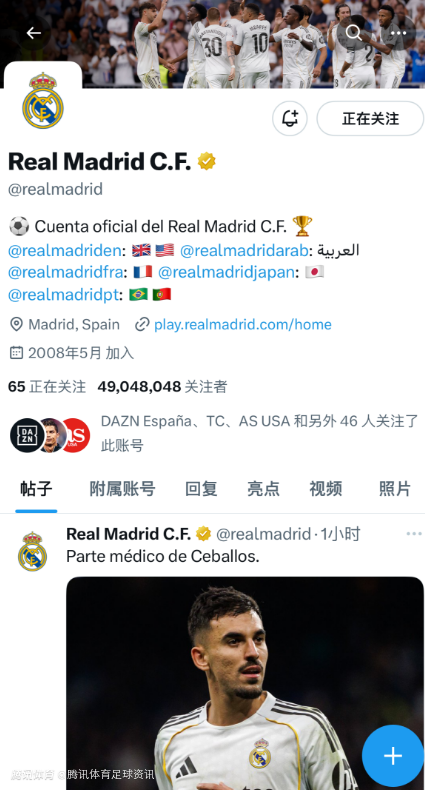 这是皇马的官方推特账号;