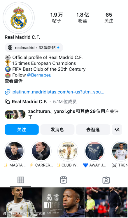 这是皇马的官方ins账号;