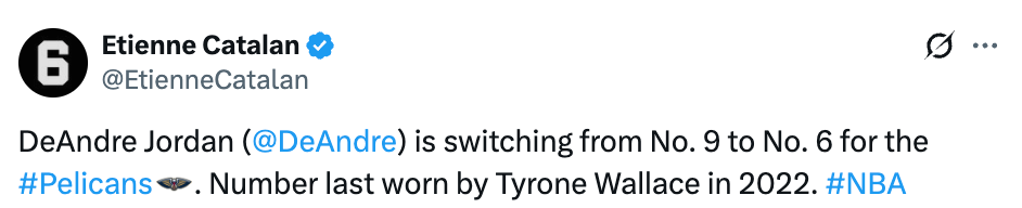 还能这样?小乔丹将鹈鹕球衣号由9号换成6号 联盟此前已永久退役6号球衣
