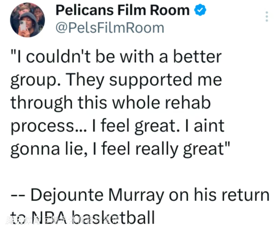 复出宣言!穆雷:我来定防守基调 鹈鹕能打造特别的东西