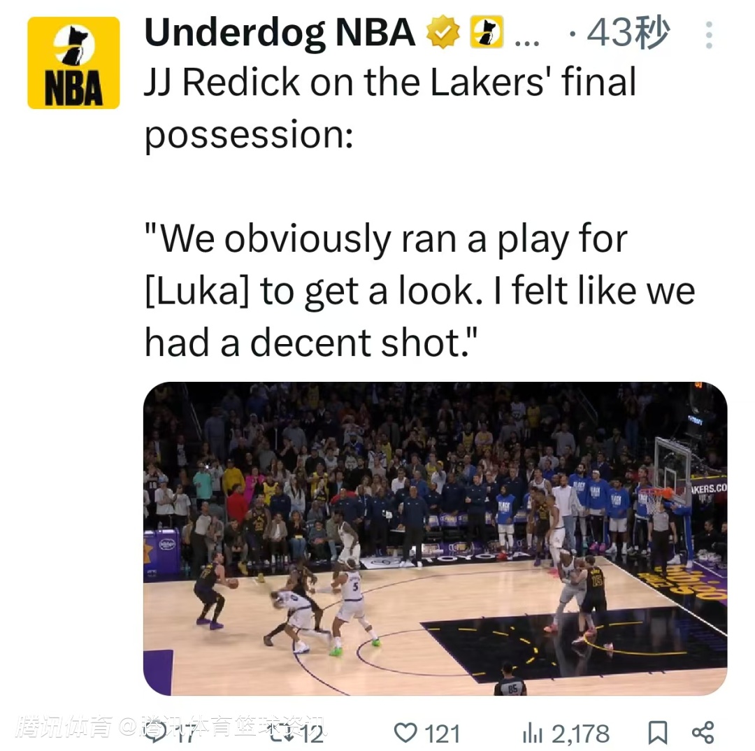 比赛最后时刻,东契奇在出现大空位时没有选择出手,对此雷迪克表示:“我还没机会好好回看。我不知道东契奇是不是以为艾萨克会过来协防,他本来可以投但后来把球传给了詹姆斯。”