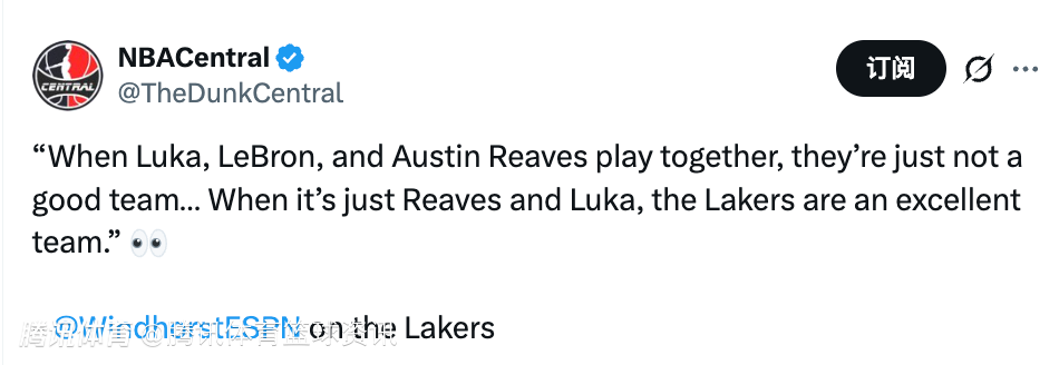 “过去两赛季他们一直拿伤病当借口,说因为伤病三人没多少一起打球的时间。但数据就是数据。只看东契奇和里夫斯两人搭档时,湖人还算不上顶级强队;可当这三个人一起上场,球队反而更差。每100回合的净胜分差距接近20分。简单说,只要这三个人同时在场,湖人就是联盟进攻最差的球队之一。”