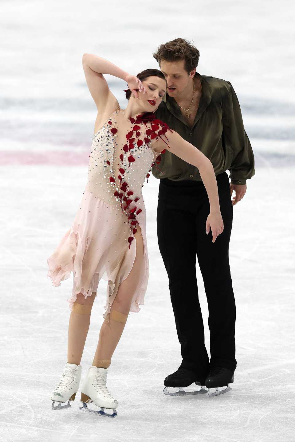 美国冰舞组合卡雷拉/坡诺玛伦科的自由舞《香水》,女伴是粉色裙+花瓣。