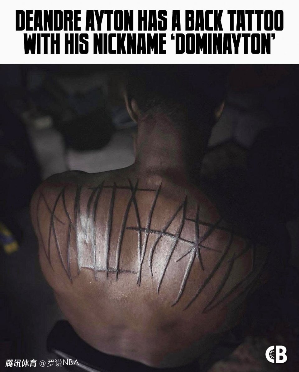 就像詹姆斯肩上的“天选之子”纹身,艾顿后背上也刺着一排粗犷的大写字母:“DOMINAYTON(统治顿)”。